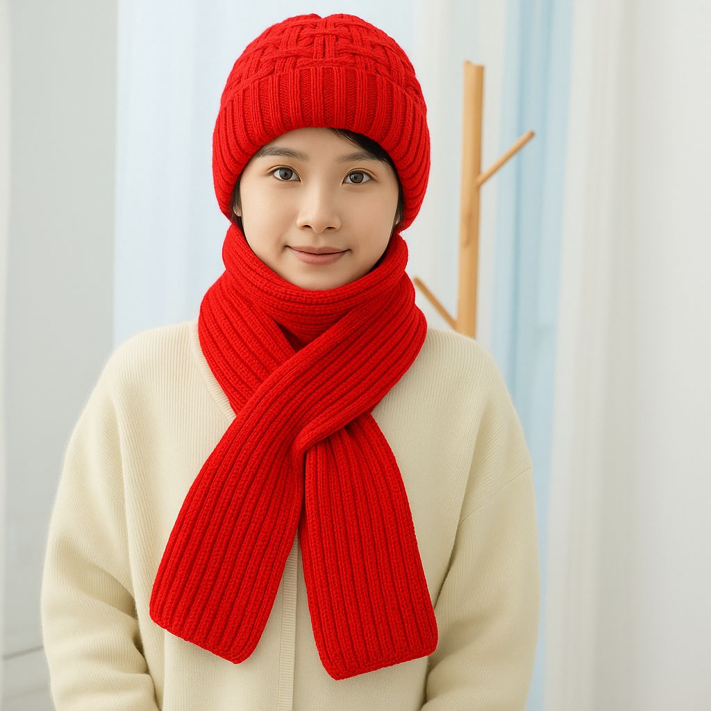 Winter Scarf Cap - লাল